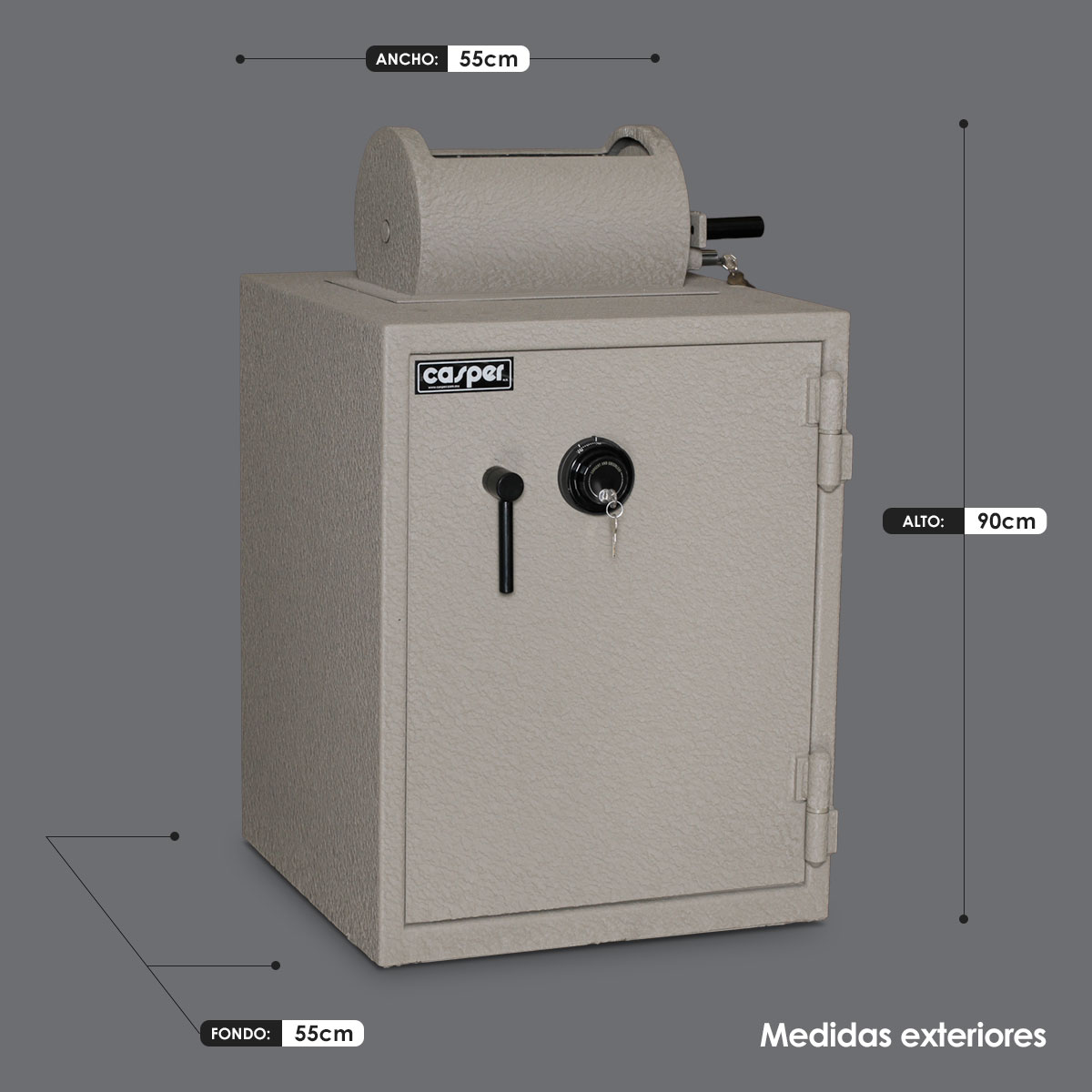 - Sistema de buzón rotativo, útil para depositar valores en sobres, contenedores o paquetes dentro de la caja fuerte sin necesidad de abrirla, todos pueden depositar solo usted puede abrirla.