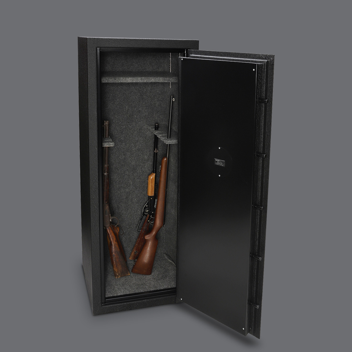 - Entrepaños desmontables para combinar rifles, pistolas, parque o accesorios.